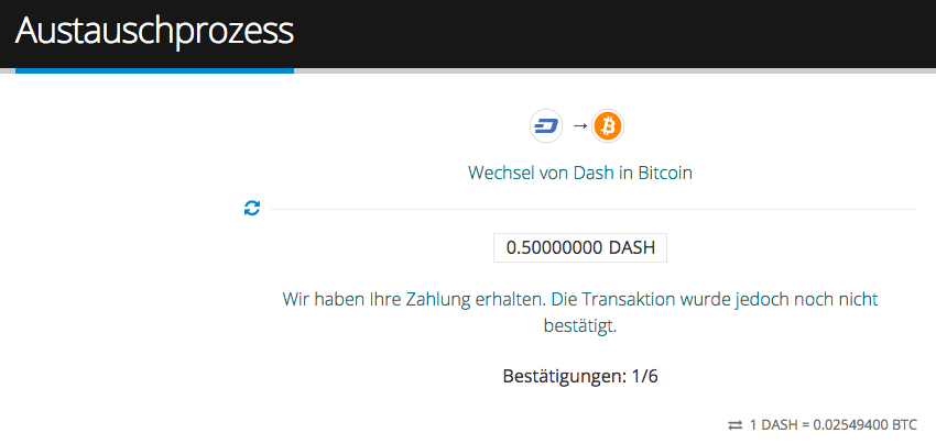 Geben Sie entweder source amount (3) (in unserem Beispiel: Dash ) oder Zielbetrag (4) ein (in unserem Beispiel: Bitcoin).