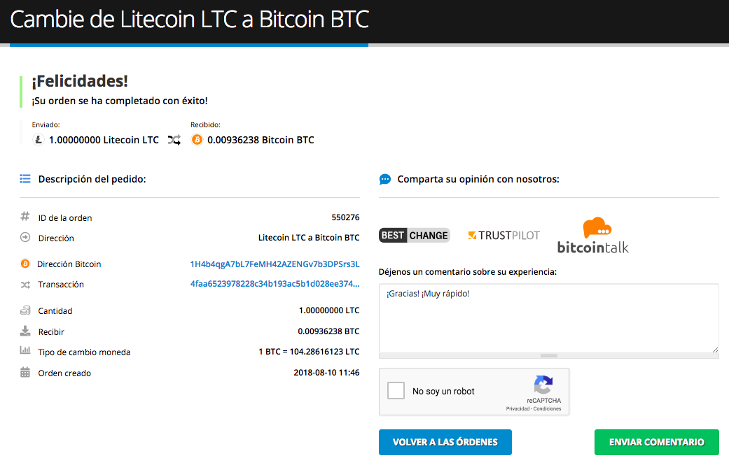 ¡Después de un pago exitoso, por favor deje un comentario sobre su experiencia de intercambio!
