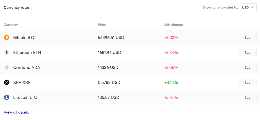The rates of 5 popular cryptocurrencies are displayed here. To view all assets go to cryptocurrency rates page.