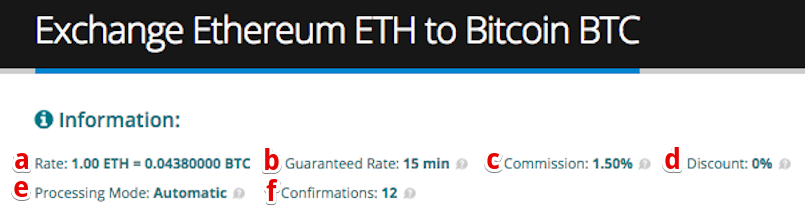 e) Exchange type. Automatic means there is no human involved and exchange automatically will be processed as soon as we’ll get your confirmed payment. Automatic exchange directions are very fast from few seconds to 5-10 minutes.