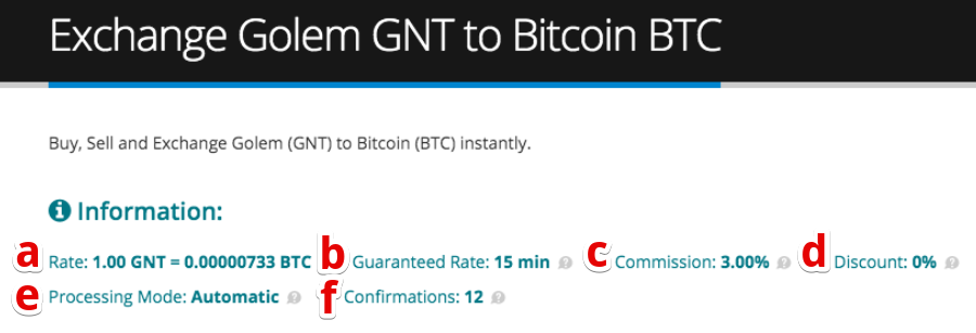 Enter either source amount (3) (in our example: Golem (GNT) or destination amount (4) (in our example: Bitcoin).