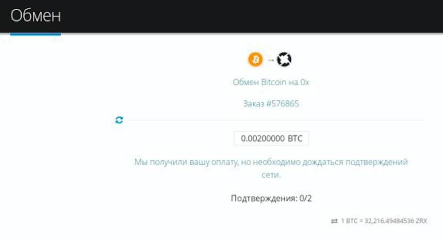 6. После того, как мы получим от вас неподтвержденную транзакцию - система будет ожидать, когда ваша транзакция наберет необходимое количество подтверждений. Как только это произойдет (2 подтверждения для Bitcoin), ваш заказ будет завершен автоматически.