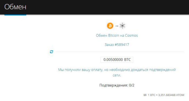 6. После того, как мы получим от вас неподтвержденную транзакцию - система будет ожидать, когда ваша транзакция наберет необходимое количество подтверждений. Как только это произойдет (2 подтверждения для Bitcoin), ваш заказ будет завершен автоматически.
